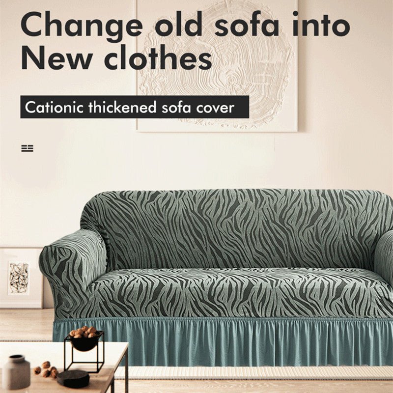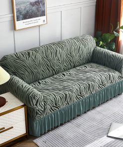 Unique wave shaped skirt is under the sofa slipcover and it was full coverage and go all the way around the back,This Spandex couch cover refreshes your beloved home just like having changed a new sofa !Soft comfortable fabric just makes it feel a bit like having a sense of well-being when you are lying