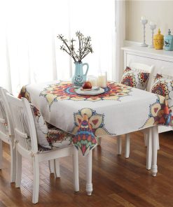 Decent elegant modern design, neutral not wild, with beautiful pattern.Stylish and simple style, excellent choice for decorating living rooms and kitchens.It is perfectly combine style and durability to protect and beautify your chairs and table.Set with table cloth ,seat cushion and pillow cover make your home more harmonious and unique.