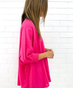 Amazing. Oversize, SO loose and drapey, it looks stunning over tights OR jeans, over a skirt, shorts or any bottoms you want to wear it with. The length is good, the cuffs are stretchy and you can wear them pulled up or down. You can wear it loose or tuck it into something. Ahhh we love it.