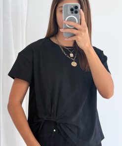 This tee is so so so nice. The cut is good, nice tuck detail on the side and the fabric is a bit thick but not too hot.