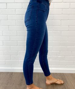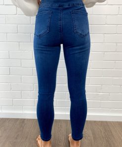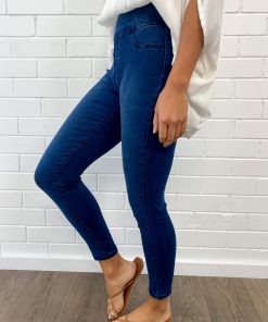 Pretty much the same as our epic Panel Jeans, but without the panel on the knees and a tiny bit thinner. Super stretchy, a good length, and featuring the panel on the tummy – which I know I love. You’ll like them.