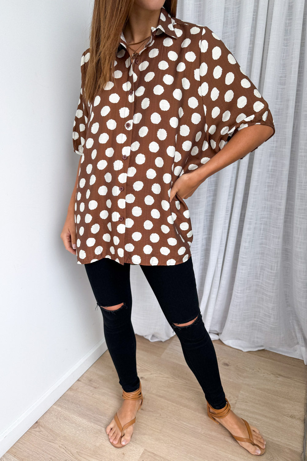 The same awesome shape as our ever-popular Tibet Shirt in black and white Polka Dot, just a little bit thicker in feel, and some gorgeous prints. Striking yet neutral, it’s amazing and we really, really like it.