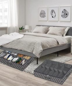 This underbed shoe storage container is foldable, it can be used under bed or in closet for space-saving. Also, the dust-proof lid allows it stackable, really a great storage solution for small space room!