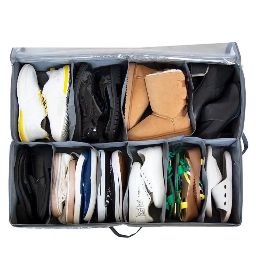 On top of this under bed shoe organizer, there is a large clear PVC window, through which you can see what’s inside easily and find your shoes soon, and also it keeps your shoes away from dust.