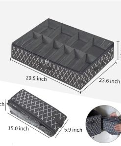 The overall size of this Sureix under bed shoe storage organizer is 29.5” X 23.6” X 5.9”.It can hold one large quilt or more than 15 pieces of clothing etc.