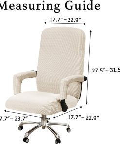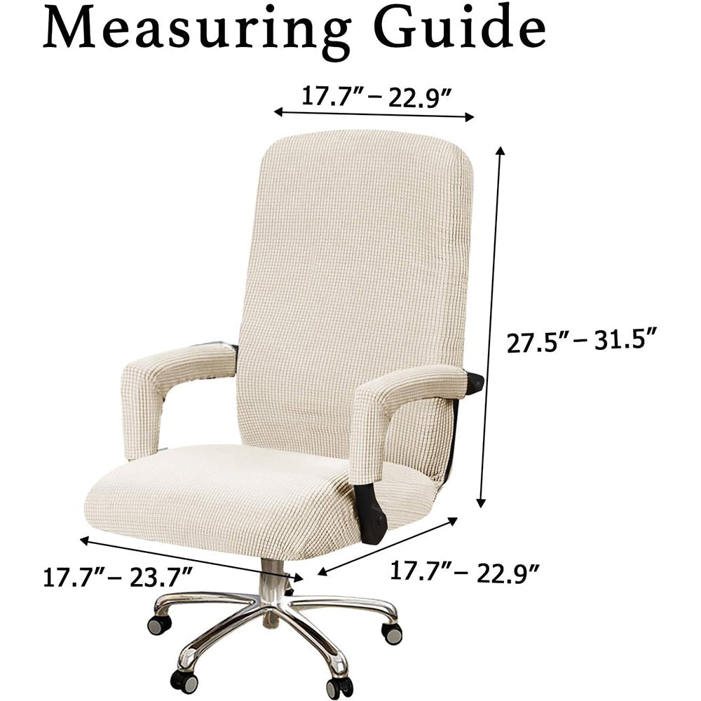 This universal design chair cover is crafted from durable and soft high stretch knitted jacquard fabric. Chair back’s height: 27.5-31.5 inches, chair back’s width: 17.7-22.9 inches, chair seat length: 17.7-22.9 inches, chair seat width: 17.7-23.7 inches. Feature one-size-fits-most, kindly measure before ordering