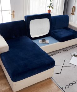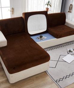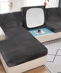 Premium fabric.Endurable and free wrinkle,95% polyester, 5% spandex fabric. Thick and highly-elastic velvet plush fabric, ultra soft, skin-friendly, Stretchy&durable, ensure the long-term use.The physical display of the sofa cover can be seen in the video.Velvet couch covers in pure color design. Simple but tasteful. An easy-matcher to your home decor! Little money for a brand new cushion!