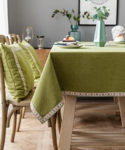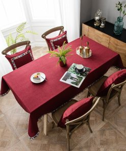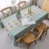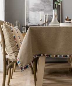 Table Cloth is made of mid-weight durable cotton linen, non-slip, moderate stain resistant and machine washable.Chair Cover is made of 85% polyester/15% spandex fabric with small checks jacquard pattern. High elasticity, soft and anti-wrinkle, durable and long lasting, It has elastic edges, easy to install and elasticized bottom will secure the chair cover stay in place firmly.Both the table cloth and the chair cover are waterproof.