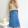 An effortless skirt and a good shape, it’s kind of fitted but also floats out. A tiny bit of stretch, it feels good on.